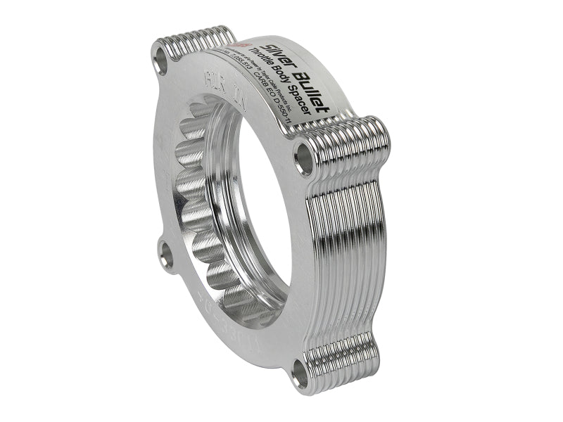 Silver Bullet throttle body spacers create turbulence in the air flow at the point just prior entry into the engine increasing horsepower, torque and improving throttle response and fuel efficiency. Silver Bullet throttle body spacers are constructed out of durable T-6061 billet aluminum and using a unique serrated/helix entry to create turbulence at the manifold while eliminating the annoying whistle found in other helix only throttle spacers.