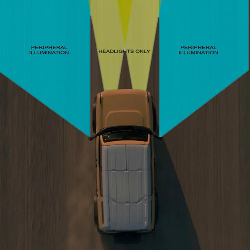 This innovative new product from ORACLE Lighting features a set of high powered LED light bars integrated into factory-style side mirrors of the new Ford Bronco! This integration allows for easy installation and a sophisticated, almost appearance while providing functional peripheral illumination for the driver. The LEDs are custom design that features a total of 24 LEDs producing approximately 2250 Lm. Each unit has a 45? beam angle to optimize the driver's peripheral visibility. Why is peripheral illumination important? Factory headlights and most auxiliary lights only illuminate the area in front of the vehicle. Ideally for off-road activities, such as trail riding, the driver needs to be able to clearly see the area on the sides of the trail to spot obstructions, which would otherwise go unnoticed and could be a potential hazard. The Bronco trim levels have different features implemented into the side mirrors from the factory such as cameras, puddle lights, and indicators. To make these mirrors compatible with all trim levels blank plates were designed to replace these features on the ORACLE mirrors. If your Bronco is equipped with these features simple remove the blank and swap over the component. If you do not have these features just leave the blanks in place for a seamless appearance. The housing material is made from rugged Polycarbonate which is 2x stronger than the factory ABS housing- and bolts onto the vehicle using the factory mounts for easy installation. A set of anodized rock guards protects the LED acrylic lenses, which also houses the DBM Reflex LED optics. These efficient optics focus the light for optimal visibility from the driver seat position.